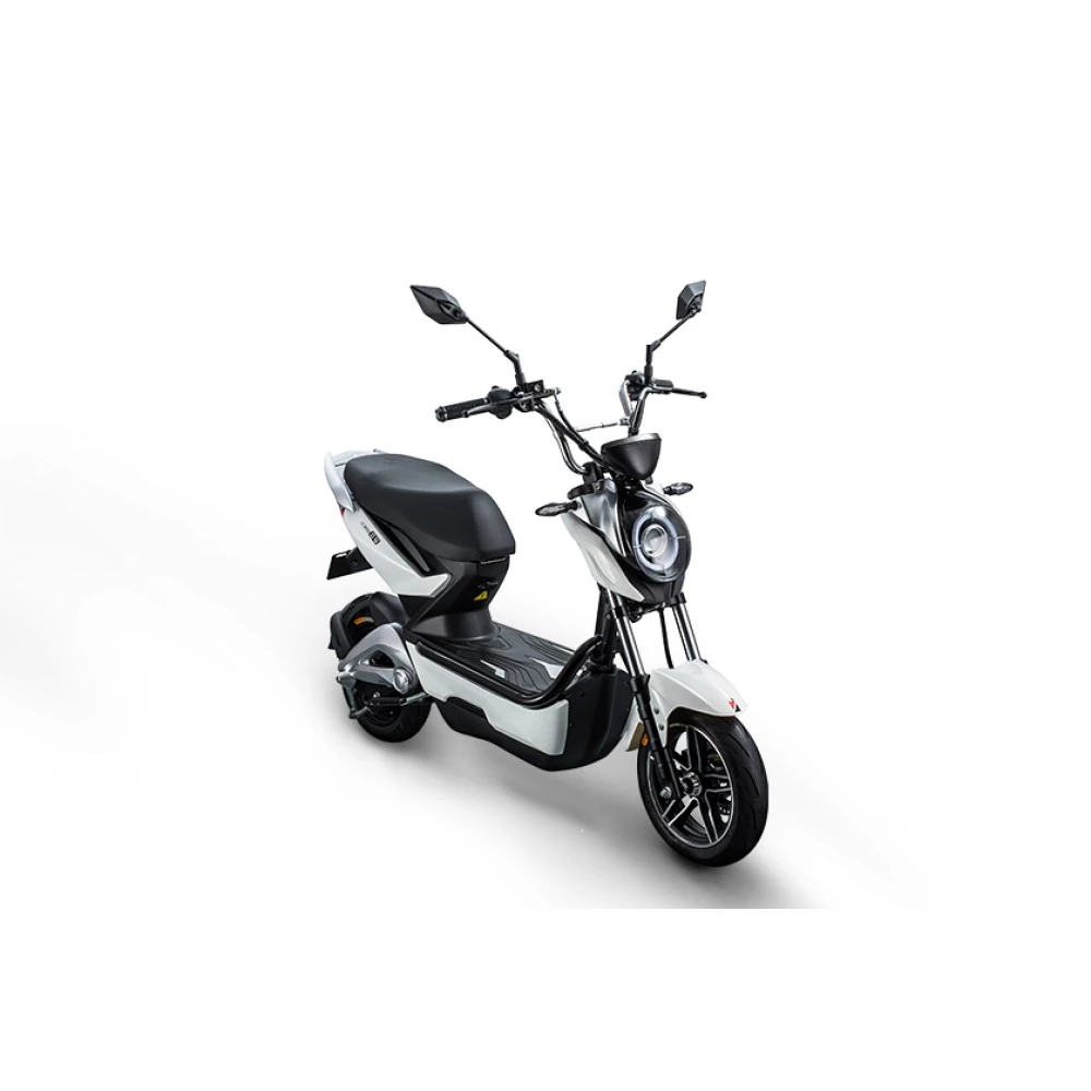 Электроскутер оснащен двумя зеркалами заднего вида и яркой светодиодной фарой, что гарантирует безопасный путь на дороге.