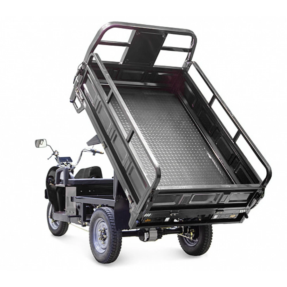 Электротрицикл оборудован гидравлической тормозной системой и амортизаторами, обеспечивающими плавность движение и отсутствие проблемой с преодолением препятствий. Транспорт имеет гарантию производителя (1 год).