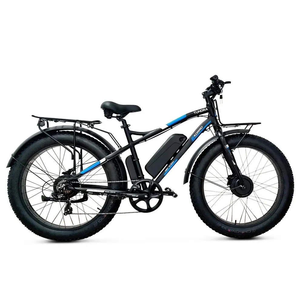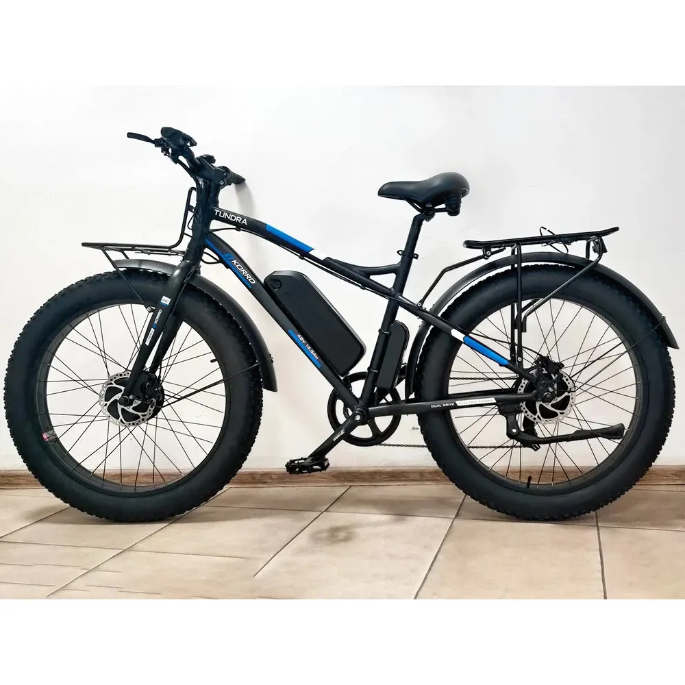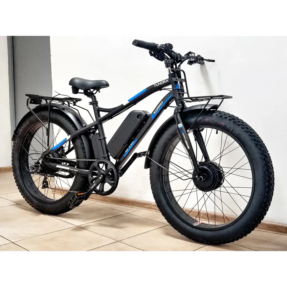 Электро фэтбайк KORRD TUNDRA – техника с цельной рамой выглядит серьезно и мощно. Масса электровелика составляет 33 кг. При этом грузоподъемность достигает до 130 кг. Модель относится к категории внедорожной, предназначена для любителей экстрима и активного отдыха. Визуально тс привлекает других участников движения. Особое оформление и максимальный функционал вызывают восторг ездоков.